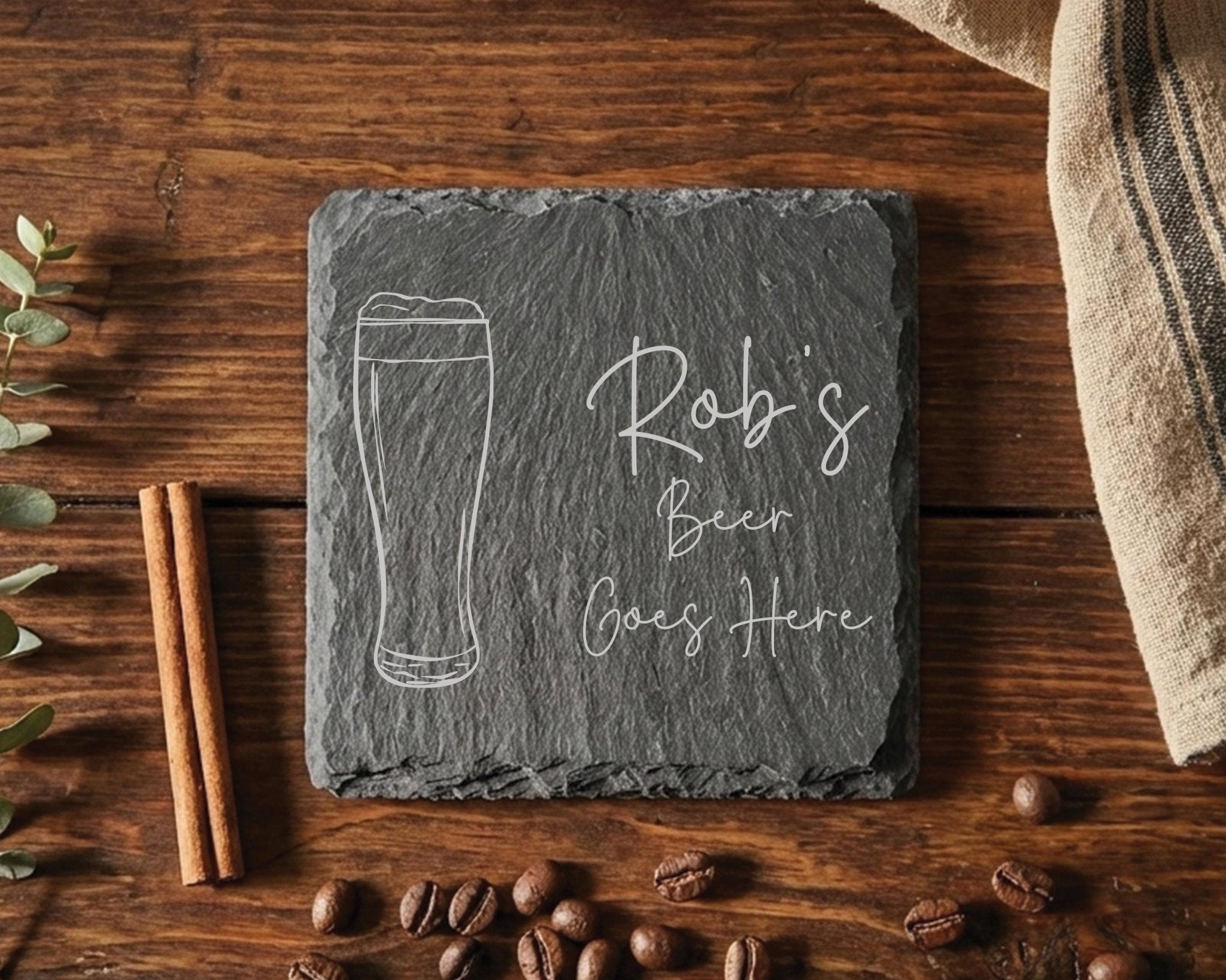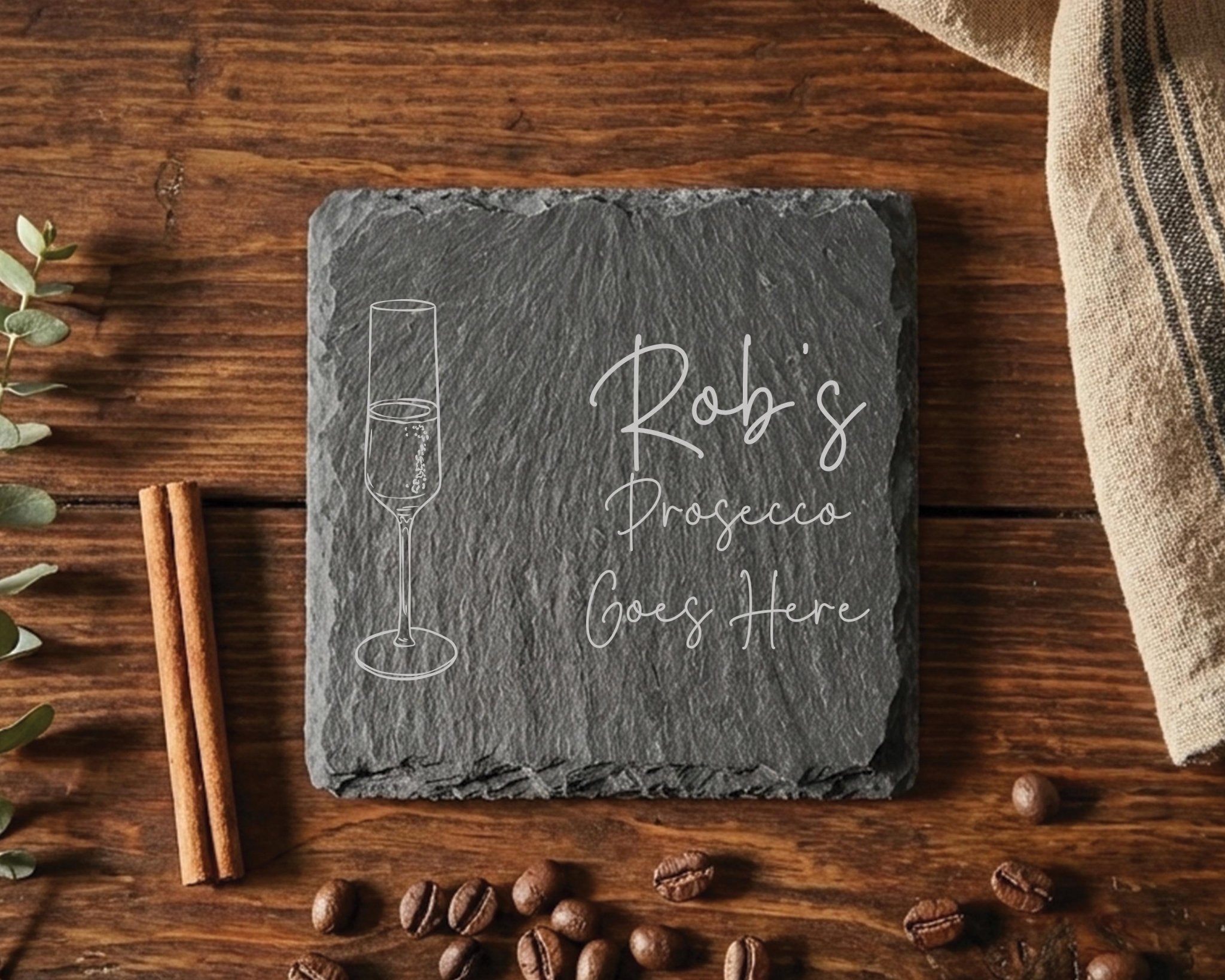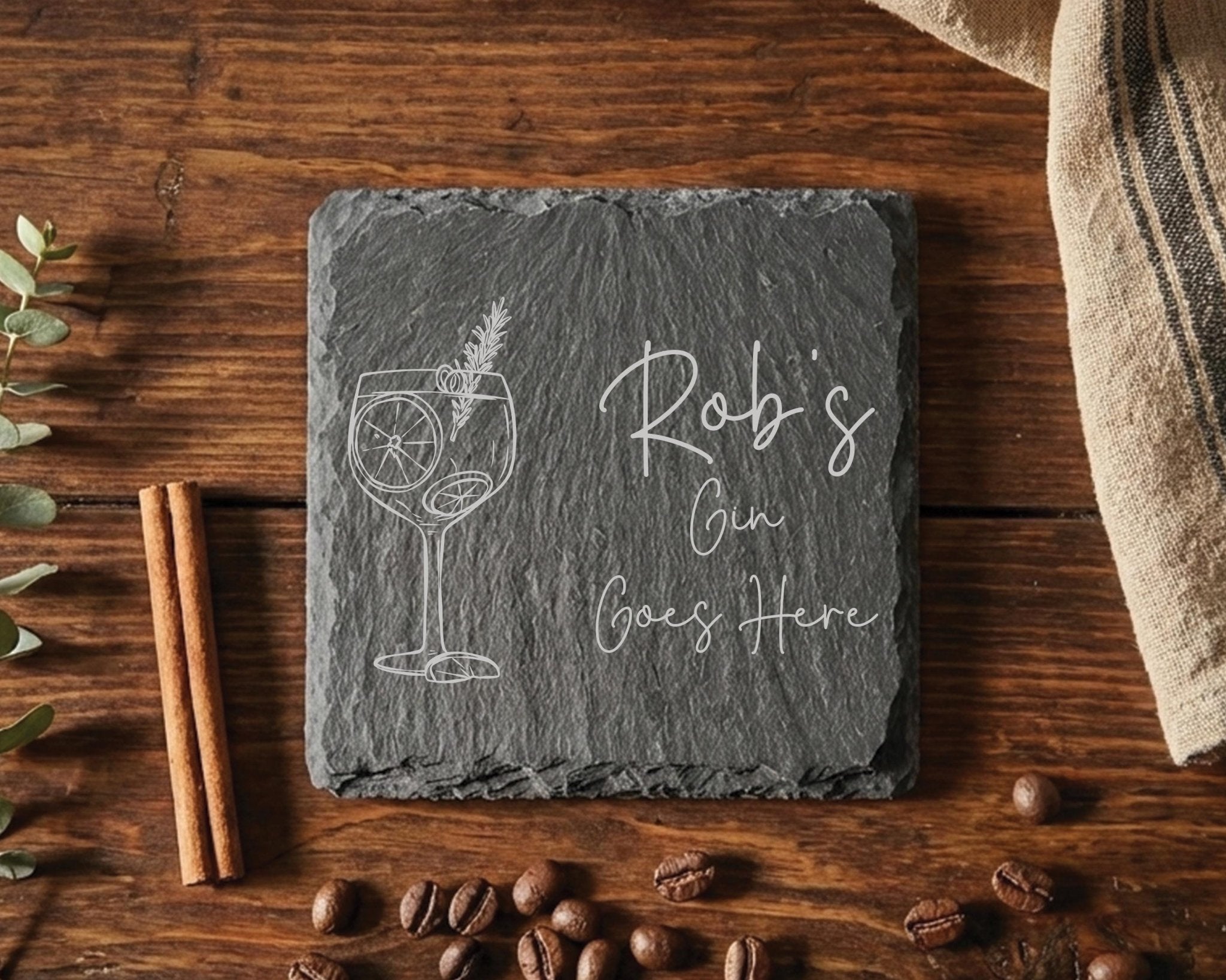 Whether you are looking for whisky gifts for him, a gin gift for mum, or a cheeky prosecco lover's gift, this personalised slate coaster is the perfect way to claim their spot at the table. From "Grandad's Whiskey" to "Sarah's Vodka," we laser engrave their name alongside their specific drink of choice, creating a fun, practical, and truly unique new home gift.