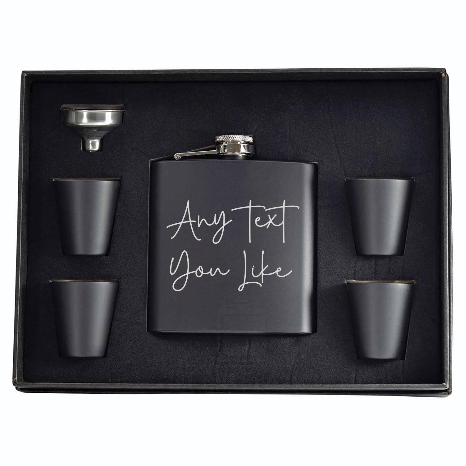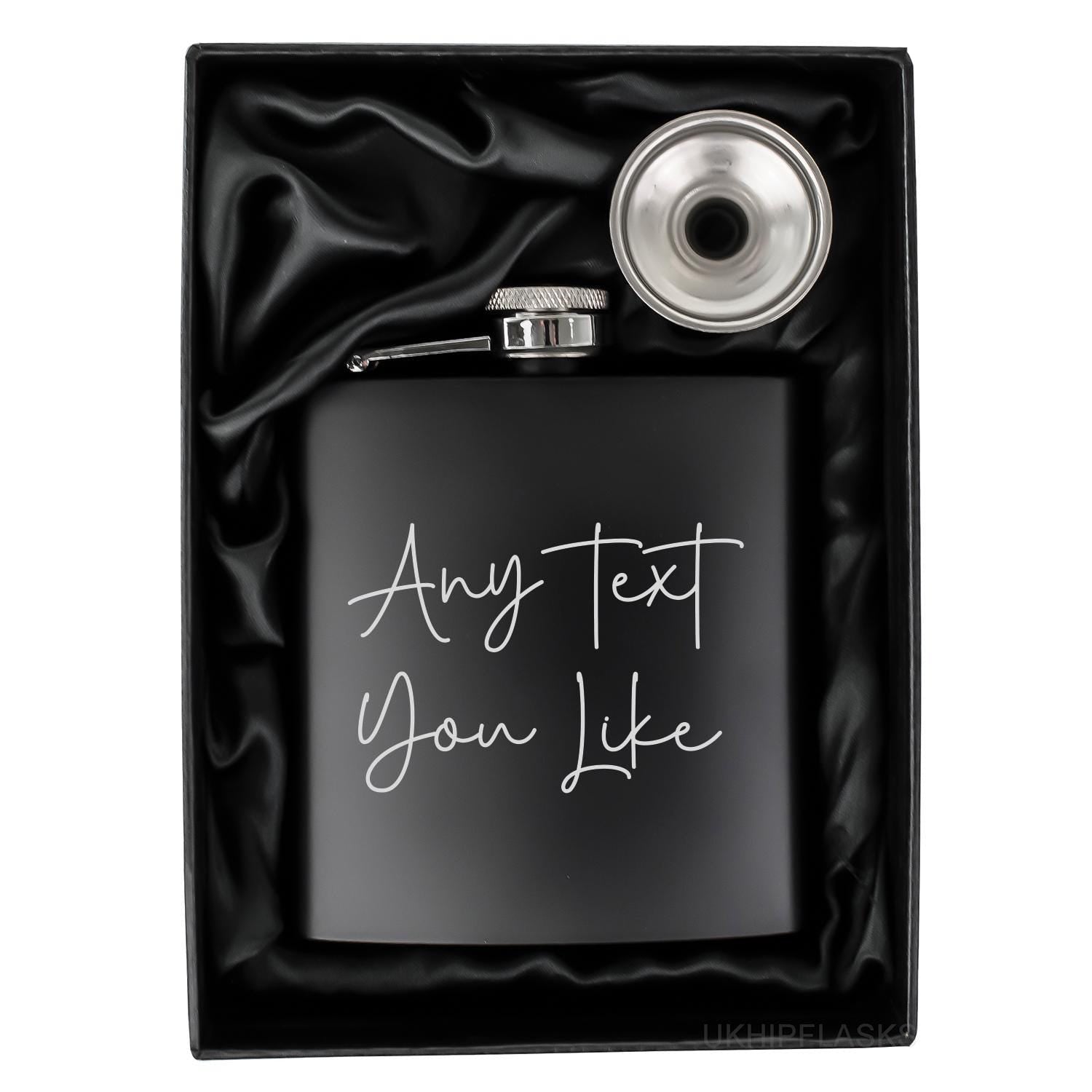 Create a gift that’s truly one-of-a-kind with this fully personalised engraved hip flask, designed to let you choose any wording and any font you like. Whether it’s a name, initials, a meaningful quote, an inside joke, or a special date, your message is permanently engraved for a sleek, classic finish that suits any style.