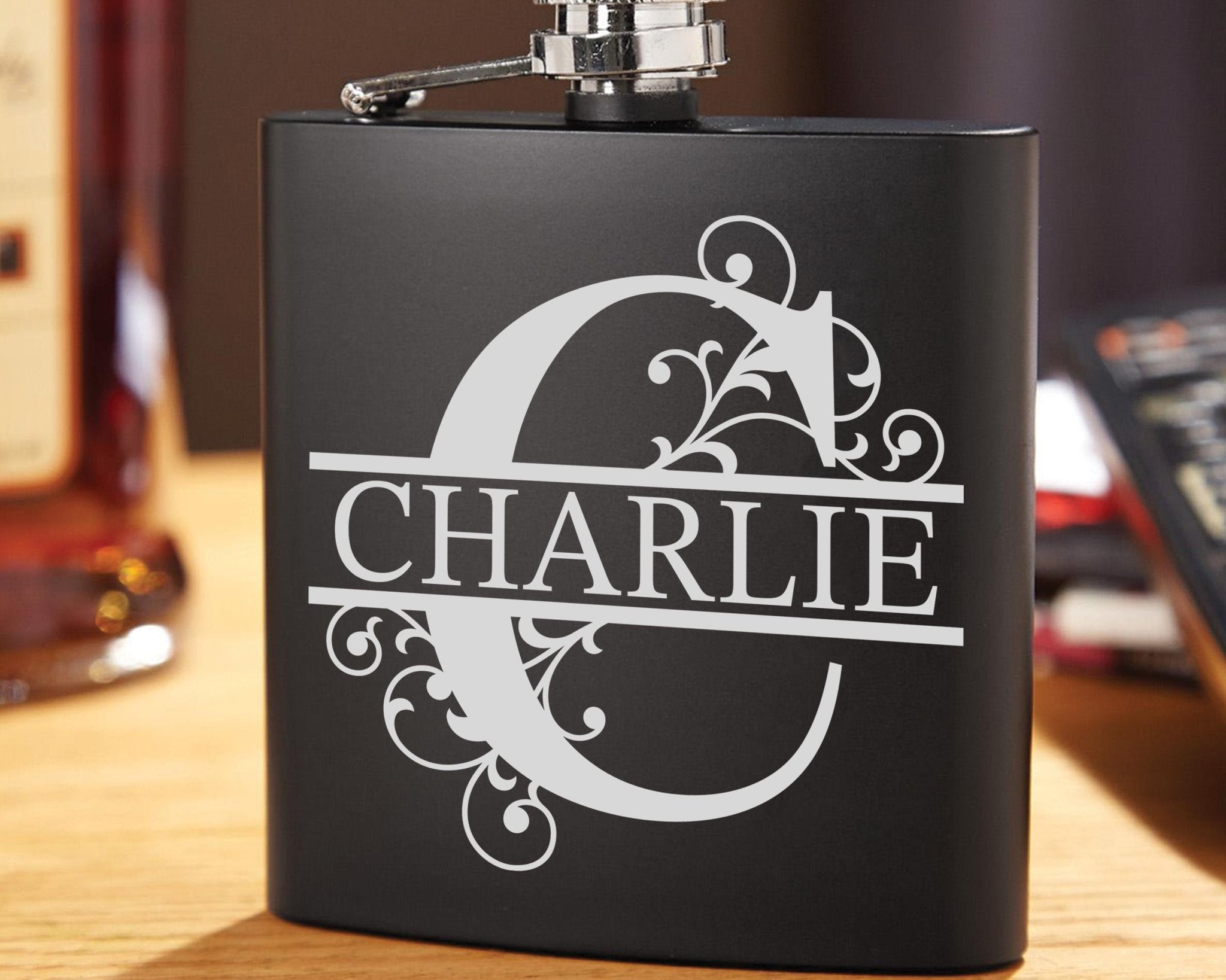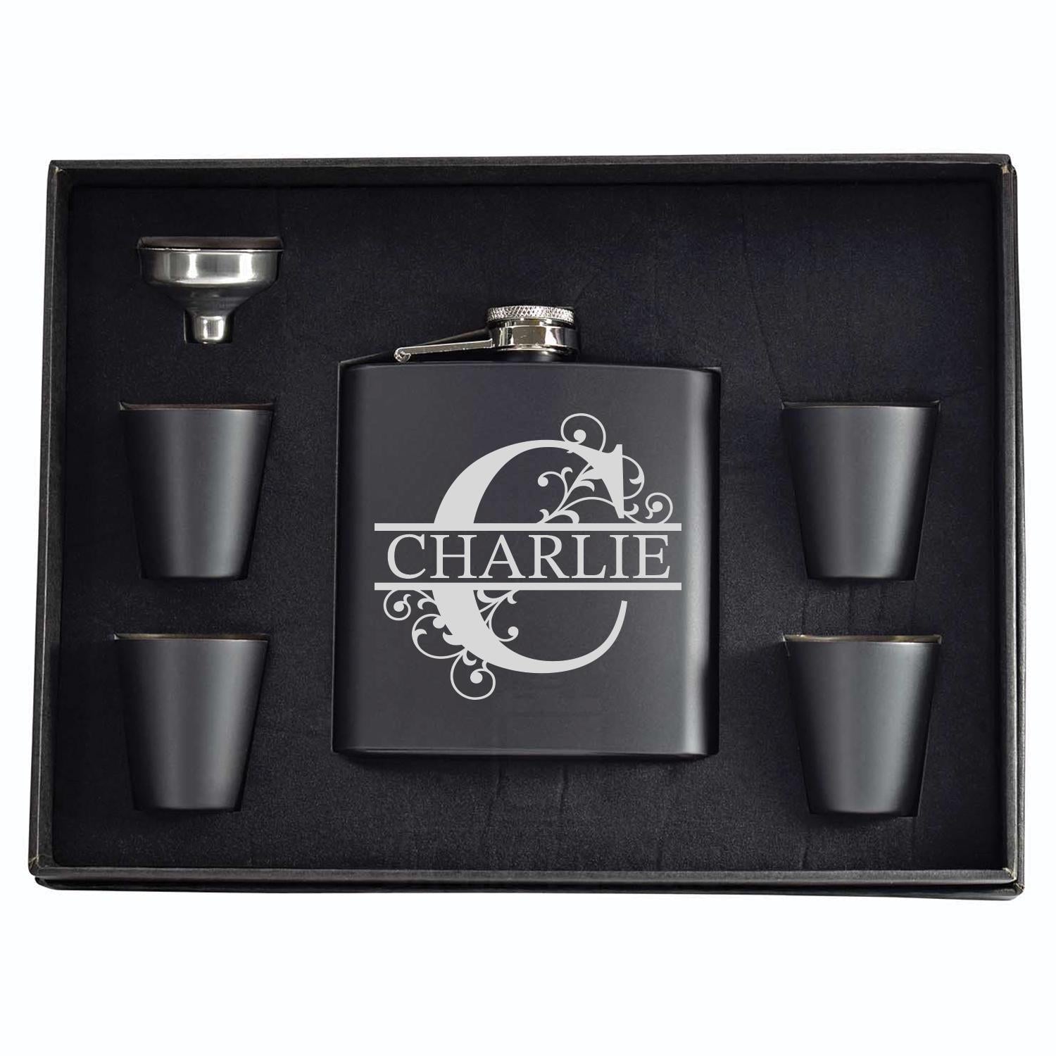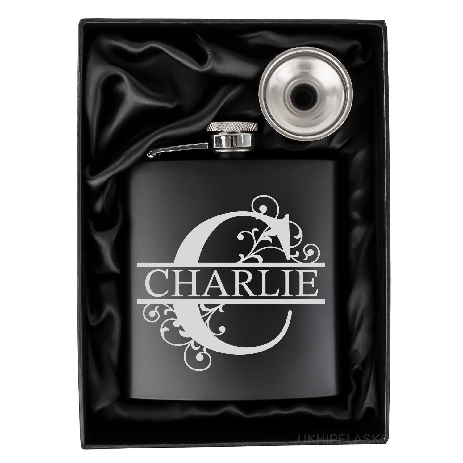 Personalised Monogram Hip Flask – Engraved Matte Black Whisky Gift