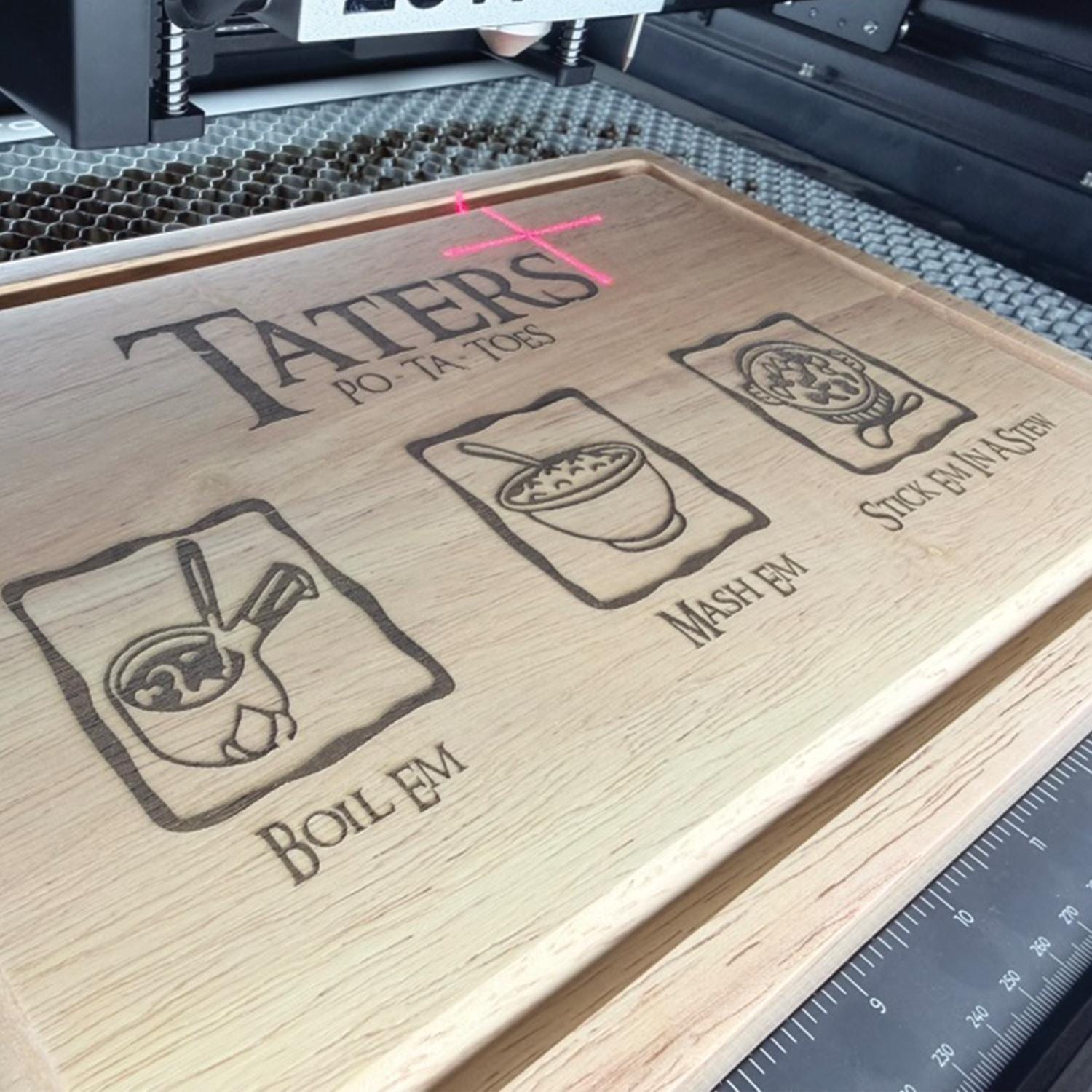 ✨ Personalisation: Make it unique! We will laser engrave the name of your choice onto the board (e.g., "Taters" or "Robbies").
