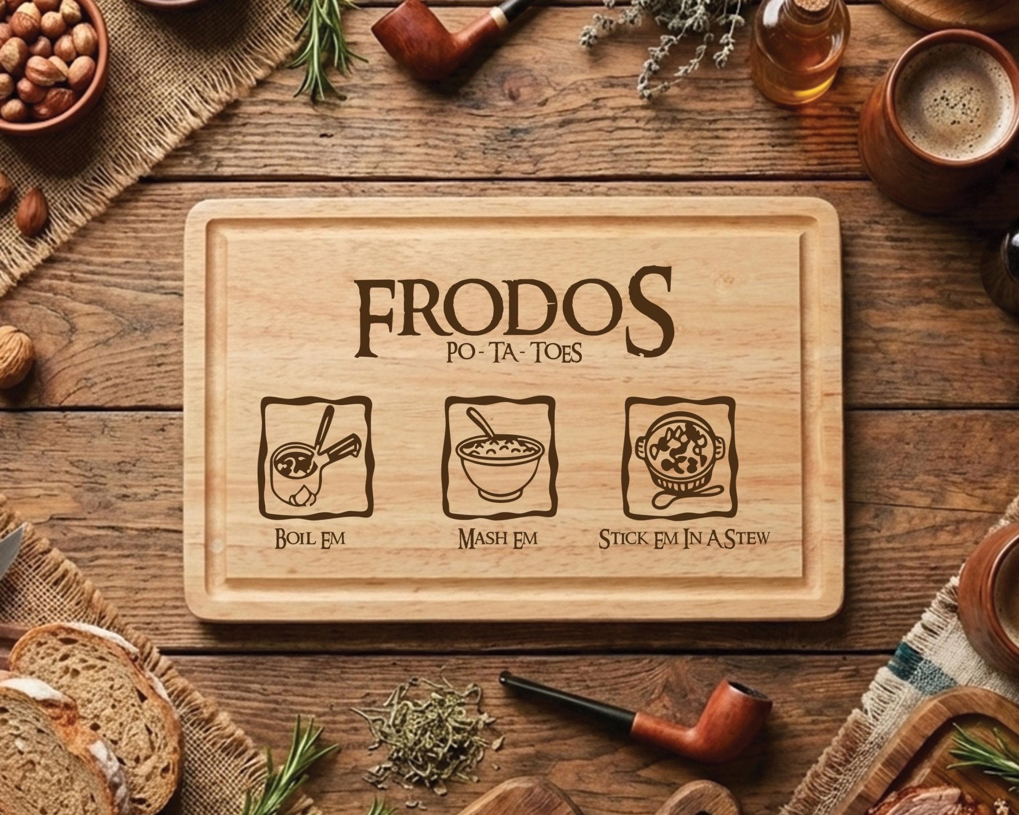 Bring a taste of the Shire to your kitchen with this Personalised Lord of the Rings Chopping Board. Whether you plan to boil 'em, mash 'em, or stick 'em in a stew, this custom wood cutting board is the perfect prep surface for any foodie or fan of Middle Earth.
