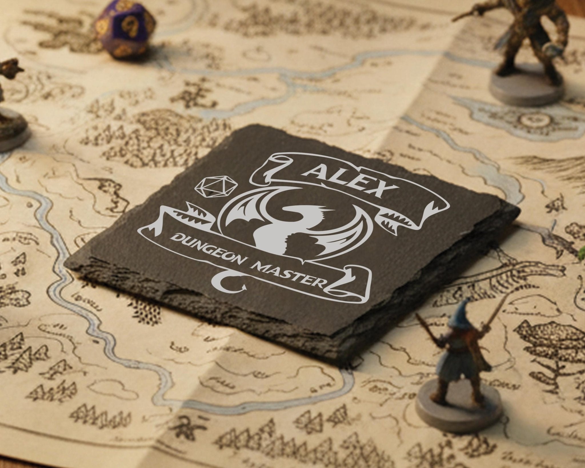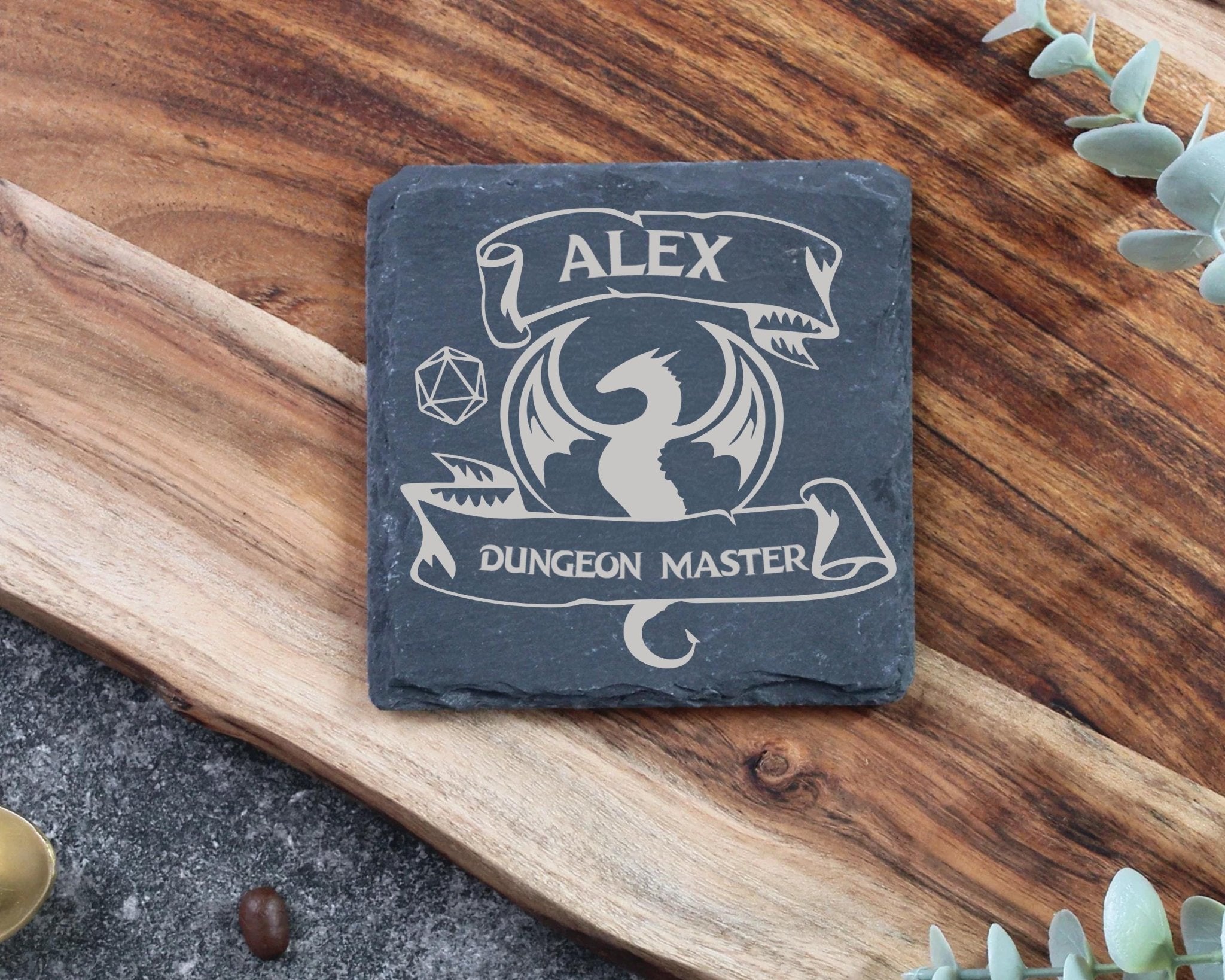 Personalized DnD Slate Coaster, Custom Engraved Table Decor